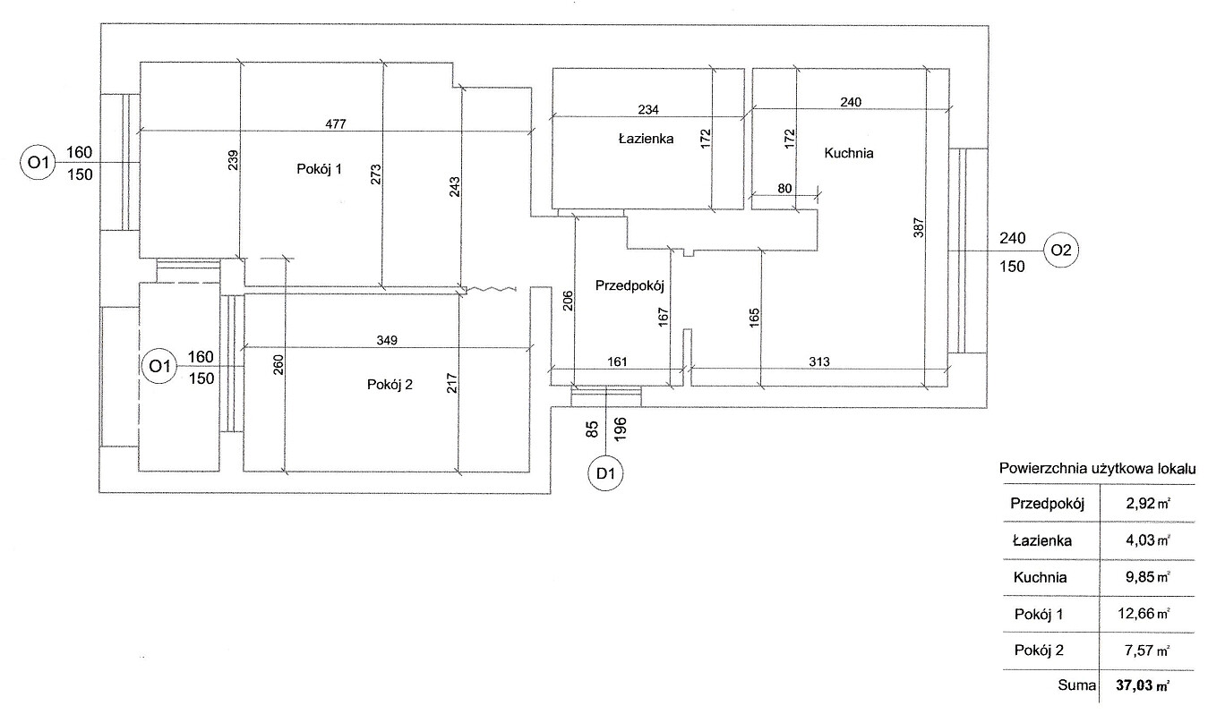 Pomieszczenia: 2 pokoje, łazienka z WC, kuchnia, korytarz, balkon