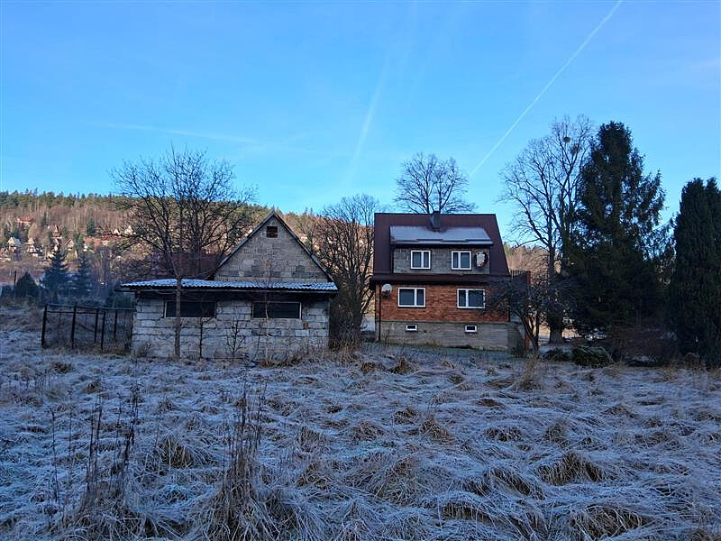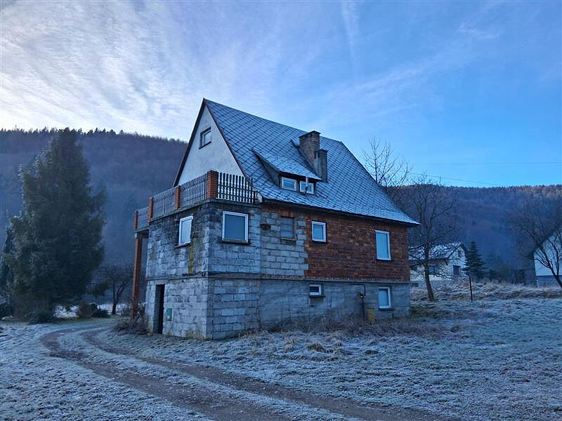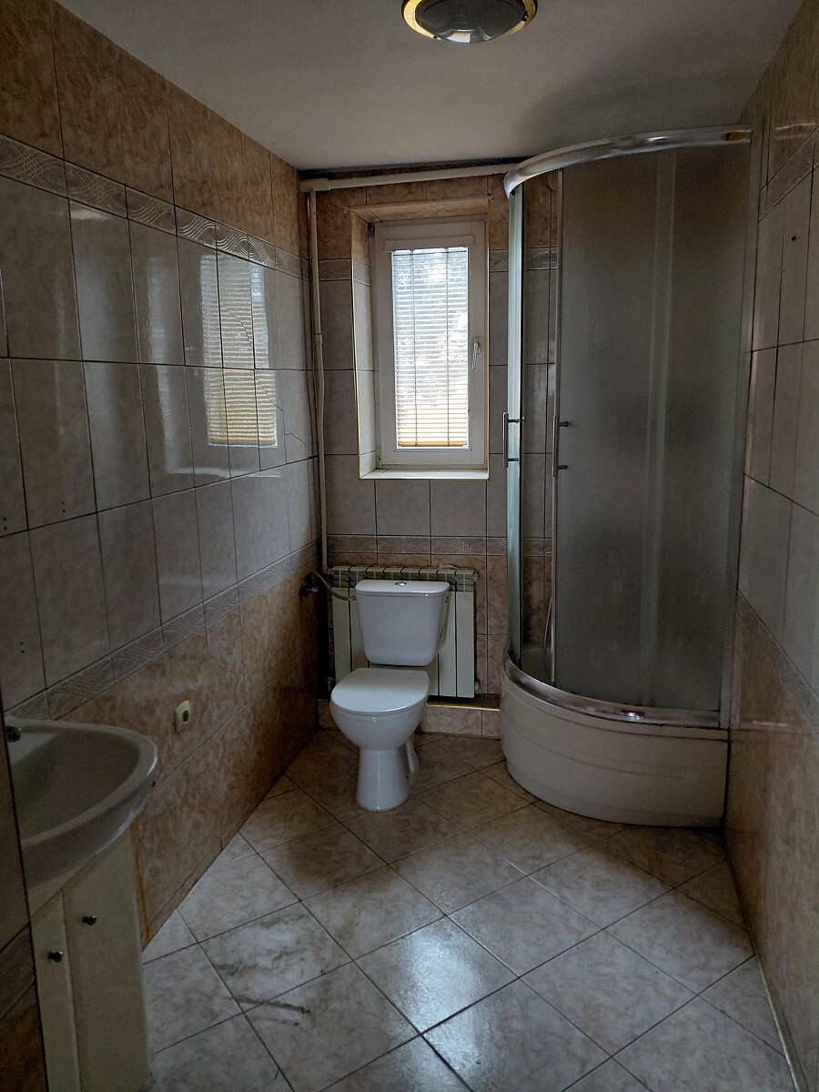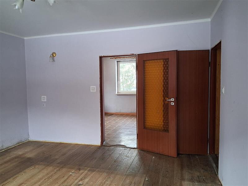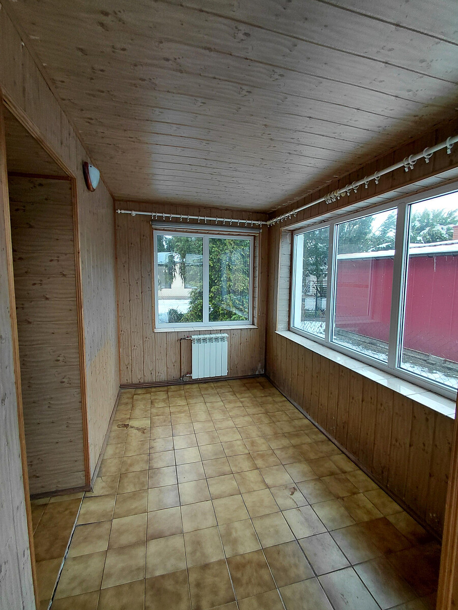Pomieszczenia: 5 pokoi, 2 łazienki, 2 kuchnie, schowek, weranda, 2 korytarze